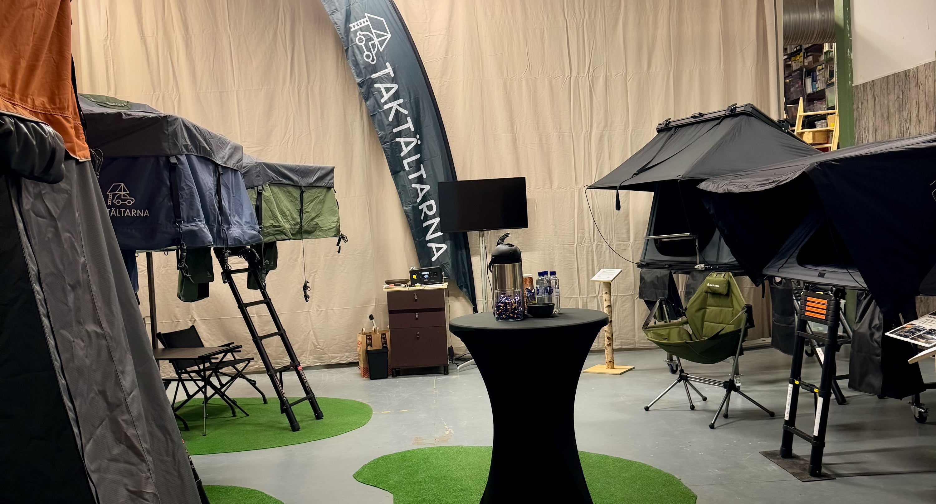 Kiipeä kattotelttojemme sisään Tukholman tai Åren näyttelytilassamme! Tule kokeilemaan, miksi kattoteltat ovat yksi nopeimmin kasvavista loma- ja ulkoilutrendeistä juuri nyt.