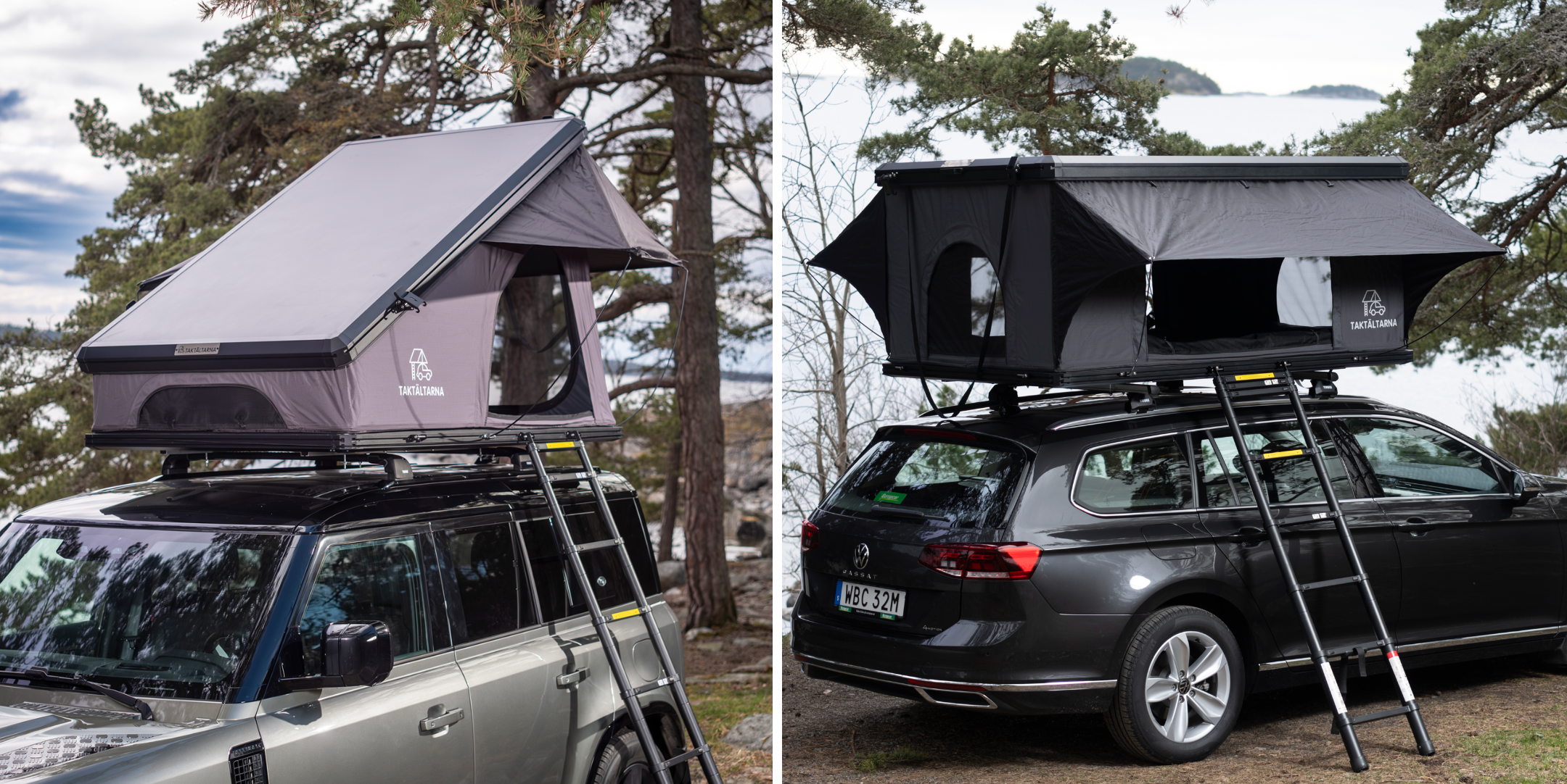 Alla olevassa kuvassa näet kattotelttamme Tothummeln ja Blåsten. Molemmat ovat kovakuorisen mallin kattotelttoja